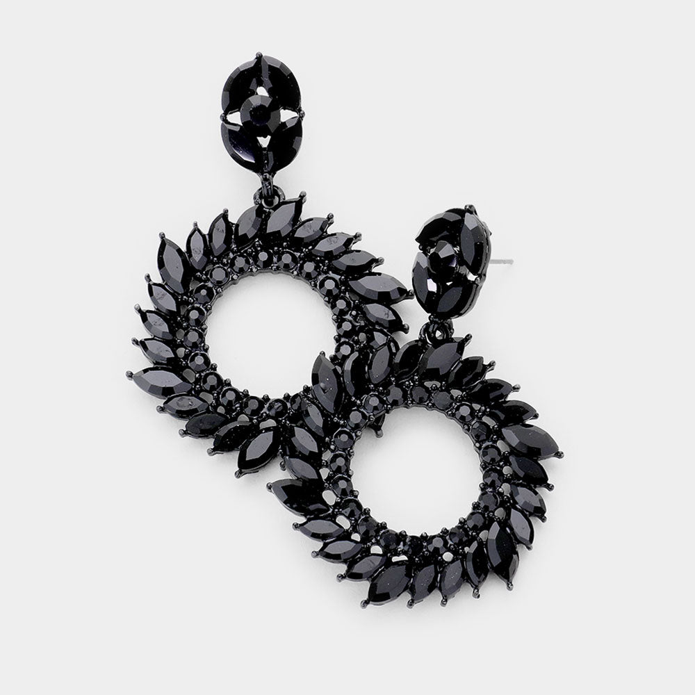 Spiral Marquise Stone Open Circle Evening Earrings